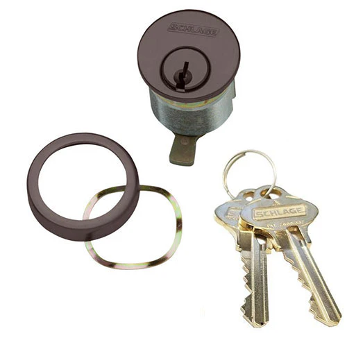 Schlage 20-001 S123 114 1-1/4 In. Mortise Cylinder, 6-pin, S123 Keyway, Keyed Different, Straight Cam, Compression Ring & Spring, 2 Keys